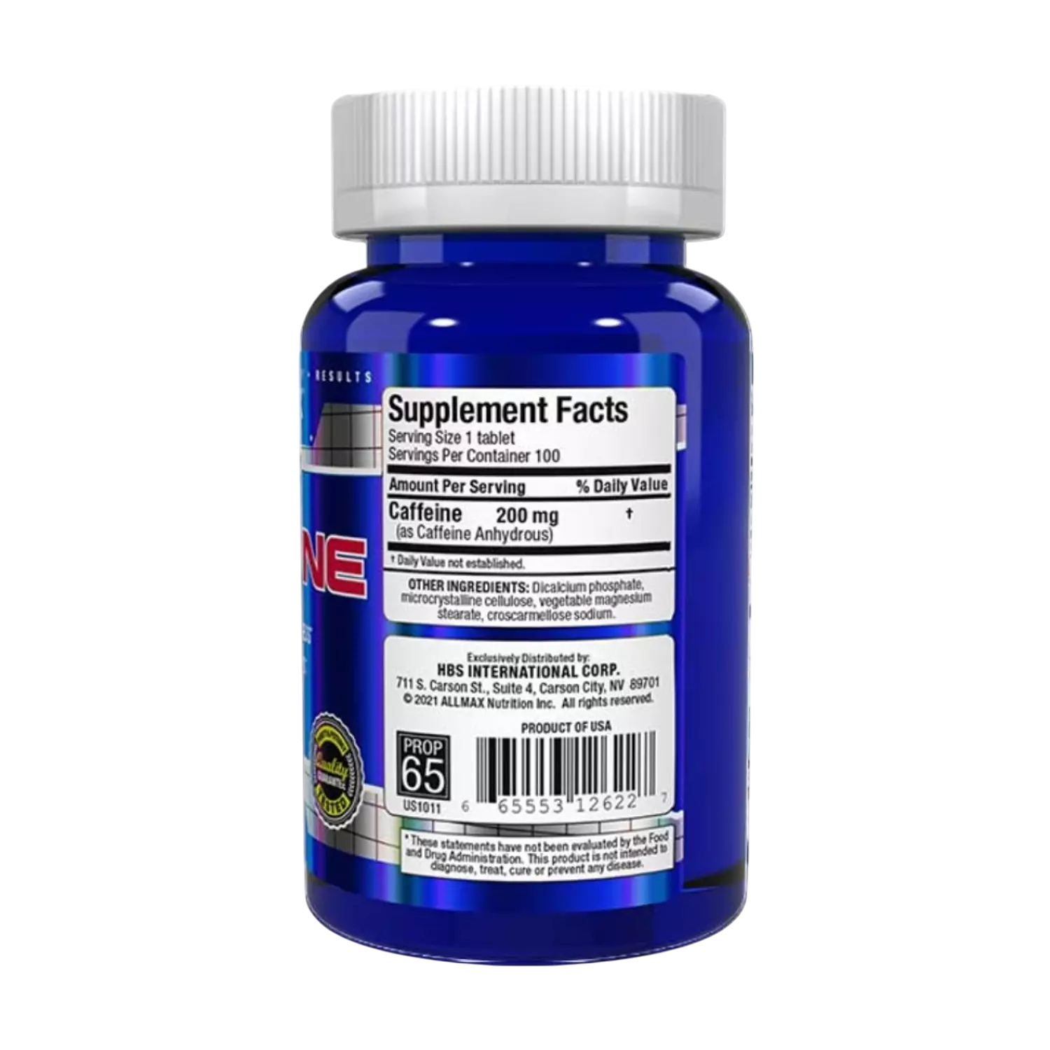 ALLMAX Caffeine Pills are designed to restore mental alertness, combat fatigue, and enhance focus and energy, especially during workouts and demanding tasks. Each tablet contains 200 mg of caffeine anhydrous, which is approximately equivalent to a strong cup of coffee.