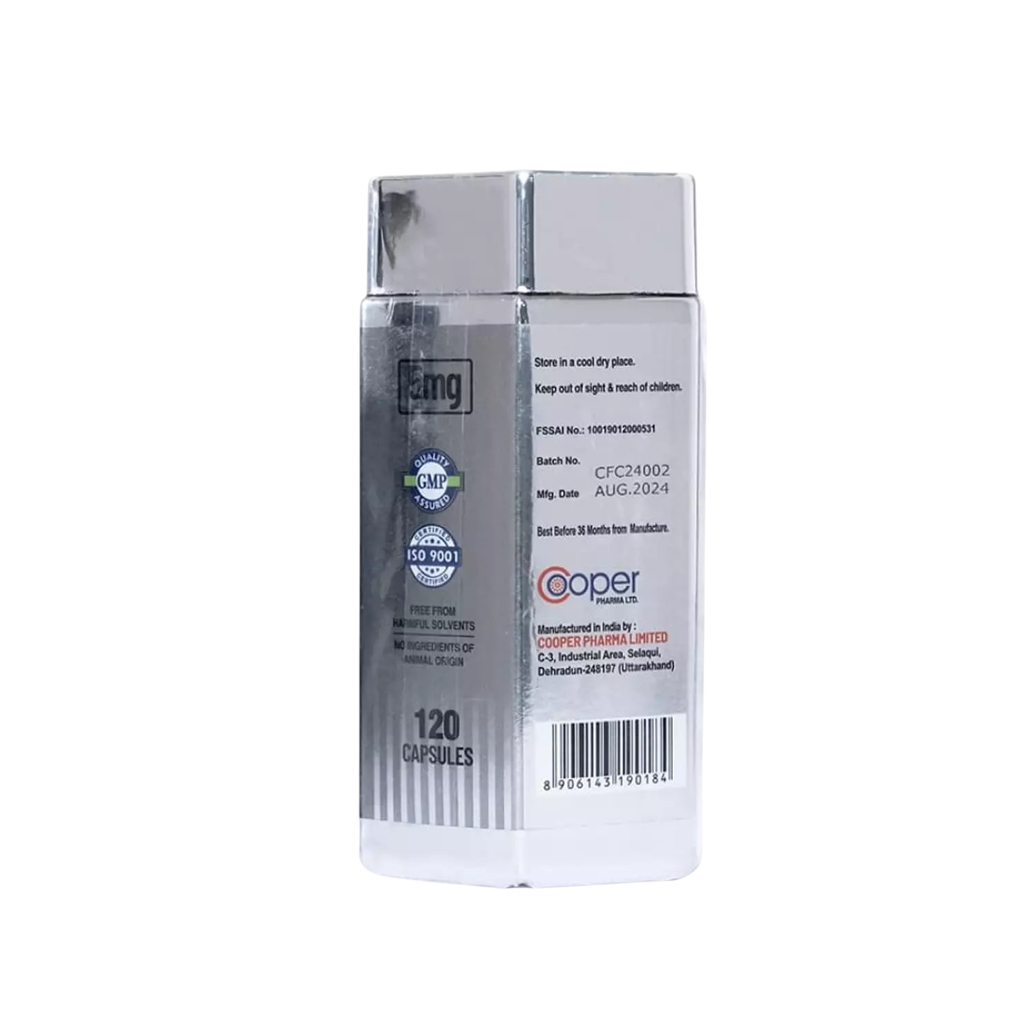 • 120 capsules per bottle.