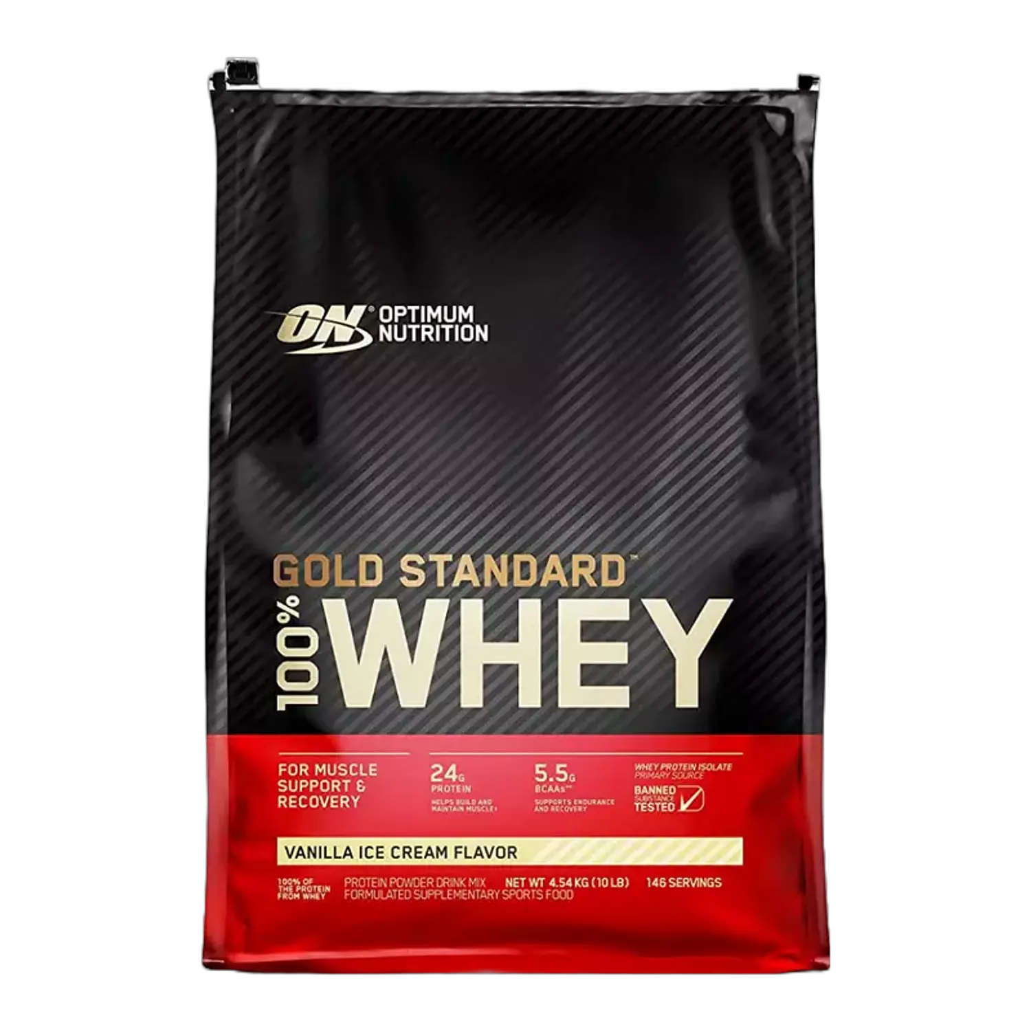 Gold Standard 100% Whey by Optimum Nutrition is the benchmark in whey protein powders — delivering 24 g of premium all-whey protein per serving, supported by 5.5 g of naturally occurring BCAAs in a mixable, great-tasting powder. With 146 servings in this size, it offers excellent value and flexibility for muscle growth, recovery, and everyday protein needs. The formula’s quality and global reputation make it a go-to for athletes and serious trainees alike.